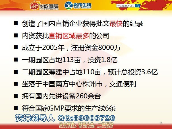 華盛國際總結(jié)的炎帝生物公司9大特點(diǎn)1、公司有直銷牌照,合法,關(guān)系實(shí)力強(qiáng)大,目前的國家工商局長周伯華是當(dāng)時(shí)株洲市市長出來的,現(xiàn)在的副局長是原來湖南省副省長出來的,公司是所有拿牌企業(yè)當(dāng)中速度最快的,從2010年上半年申牌,到2011年底批復(fù),1年半,2012年初正式發(fā)牌。公司法人代表厲農(nóng)帆(原長沙市旅游局局長)和董事長都是原來湖南省的廳級干部,政府關(guān)系密切。2、公司不缺錢,炎帝生物和三湘股份一個(gè)后臺老