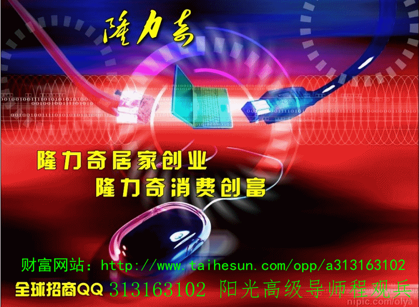 開創(chuàng)零風(fēng)險(xiǎn)創(chuàng)業(yè)計(jì)劃,改變一生的事業(yè)朋友們好:選擇決定方向,心態(tài)決定成敗。絕對比打工強(qiáng)電子商務(wù)作為未來世界經(jīng)濟(jì)的趨勢和潮流,倍受世界各國的推崇:通過互聯(lián)網(wǎng)在家創(chuàng)業(yè),已成為一種潮流,在我們中國每天上網(wǎng)的認(rèn)多達(dá)4億。今天中國最大的日化企業(yè)—隆力奇生物科技股份有限公司,剛剛啟動(dòng)電子商務(wù)項(xiàng)目,在2008年8月25日正式獲得由國家商務(wù)部頒發(fā)的直銷經(jīng)營許可證,受國家法律保護(hù)。其產(chǎn)品也以其質(zhì)量高端化、價(jià)格大眾化著