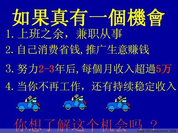 1)大賣場(chǎng)-----品種繁多,物美價(jià)廉;地面網(wǎng)絡(luò)店鋪真正實(shí)現(xiàn)空中沃爾碼百貨超市的經(jīng)營(yíng)模式和優(yōu)勢(shì)。如果你是產(chǎn)品廠家是不是也愿意給沃爾瑪、家樂福等大賣場(chǎng)供貨呢?(2)獨(dú)家代理權(quán)-----名優(yōu)產(chǎn)品,以量制價(jià)、(國(guó)美電器)價(jià)格才能低,麥當(dāng)勞和肯德基雖然也可以加盟,但是它只與少數(shù)的富人合作。不是我們普通人的商機(jī)。(3)重復(fù)消費(fèi)—沒有重復(fù)消費(fèi)公司不會(huì)長(zhǎng)久!主動(dòng)消費(fèi)與被動(dòng)消費(fèi);大部分直銷公司的產(chǎn)品貴的驚人,售價(jià)