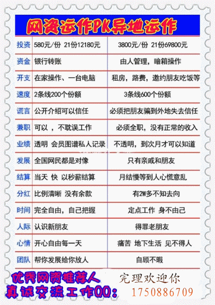 ``考察網(wǎng)資你必須要了解的幾個(gè)問題``【第一】網(wǎng)資的發(fā)展歷史為什么會出現(xiàn)網(wǎng)資呢1.異地弊端越發(fā)突出。由原來的3800到現(xiàn)在的69800,投資越來越大,物價(jià)上漲,運(yùn)作成本急劇上升。異地的調(diào)控越來越頻繁,力度越來越大,負(fù)面影響非常嚴(yán)重。2.互聯(lián)網(wǎng)時(shí)代已來臨。中國網(wǎng)民即將突破五億,互聯(lián)網(wǎng)不用謊言邀約,沒有運(yùn)作成本等等。3.異地從業(yè)的人員越來越多,失敗的人自然的越來越多,這些人如何安置?至少,政府從維穩(wěn)這