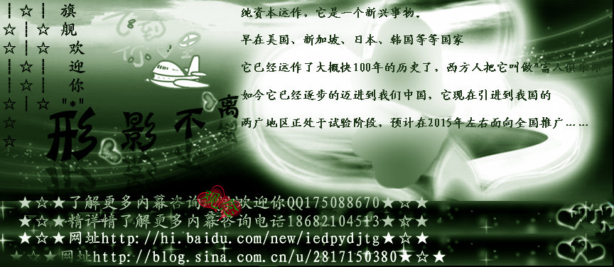 選擇網(wǎng)`資的十大理由選擇網(wǎng)`資的十大理由了解更多內(nèi)幕咨詢完理歡迎你QQ1750886709咨詢電話186821045131、☆真正的以小搏大,完全符合投資原則,以最小的投入獲取最大的利益;2、☆風(fēng)險(xiǎn)小,風(fēng)險(xiǎn)包括經(jīng)濟(jì)風(fēng)險(xiǎn)和人格風(fēng)險(xiǎn);3、☆回報(bào)高,93%的資金全部分配,是任何其他項(xiàng)目所無法比擬的;4、☆沒有業(yè)績壓力,級別只升不降,只做加法,不做減法;5、☆人人都可以成功,可為您聚升人氣,鏈條式管理,上
