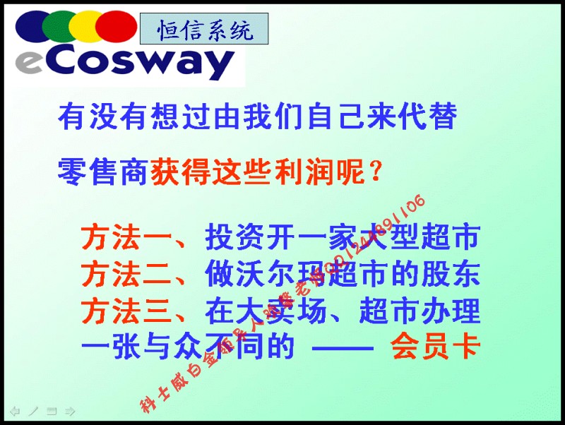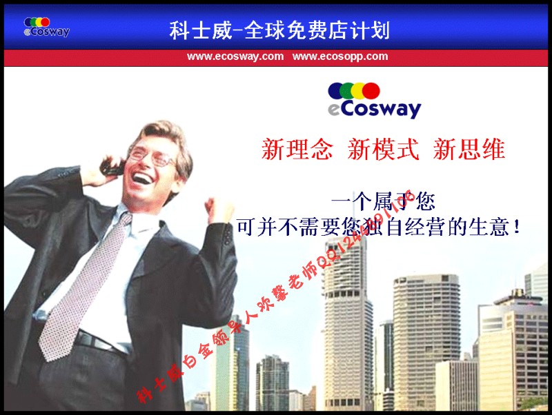 焦作e科士威ecosway一個(gè)前所未有的創(chuàng)業(yè)商機(jī)(QQ:1244891106)焦作ecoswaye科士威是馬來西亞成功集團(tuán)旗下的電子直銷商務(wù)平臺,作為一個(gè)超級空中購物超市,其經(jīng)營著全球幾千種品牌產(chǎn)品,通過其無處不在的郵政運(yùn)輸網(wǎng)絡(luò)將這些物美價(jià)廉的產(chǎn)品輸送到千家萬戶。作為一家向消費(fèi)者提供購物創(chuàng)業(yè)機(jī)會(huì)的直銷公司,ecoswaye科士威不能說是絕后,但絕對是空前的,其獨(dú)特新穎的經(jīng)營模式一來到中國,立即就引