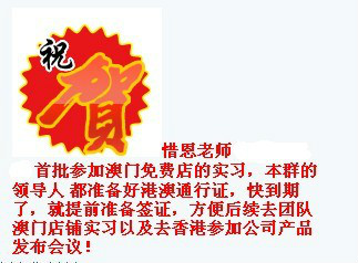 實習(xí)店長:惜恩Q7572369222012隨著大陸市場科士威的爆發(fā),我們王者眾贏團隊迎來了澳門的首家免費店,很幸運這次有機會去澳門參加店長實習(xí),澳門是一個非常漂亮的城市。澳門北鄰珠海,東與香港相距60公里,中間以珠江口相隔。澳門是一個自由港,也是世界四大賭城之一。自從澳門回歸中國之后,經(jīng)濟迅速增長,經(jīng)濟繁榮,他比較出名的是輕工業(yè)、美食、旅游業(yè)、酒店和娛樂場,澳門現(xiàn)在也是亞洲最發(fā)達(dá)、最富裕的地區(qū)。澳