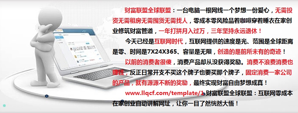 如果你沒有夢(mèng)想,那們就來(lái)找林桂帆老師,給你造一個(gè)夢(mèng)想,如果你有夢(mèng)想,那就跟著咱們財(cái)富聯(lián)盟:全球聯(lián)盟——互聯(lián)網(wǎng)零成本零風(fēng)險(xiǎn)在家創(chuàng)業(yè)聯(lián)盟創(chuàng)始人成誠(chéng)老師一起去實(shí)現(xiàn),咱們財(cái)富聯(lián)盟就是幫助你實(shí)現(xiàn)財(cái)富自由夢(mèng)想成真的聯(lián)盟,緊跟財(cái)富聯(lián)盟必定財(cái)富自由,超越成誠(chéng)老師必定事業(yè)成功!