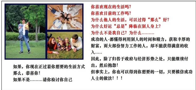 有些人的一生,100%靠自己的努力賺取收入,實在很令人贊嘆。當您想到這里,幾乎生活中每件事都要靠分工合作。您住的房子不是自己蓋的,車子不是自己設(shè)計的,連您在用的這部計算機也不是自己組的。您利用別人的才智和努力來打造生活?,F(xiàn)在起,您可以不必這么辛苦,您可以用聰明的方法工作。我們會告訴您如何將這個模式套用在您身上!有了和贏系統(tǒng),您可以自己當老板!