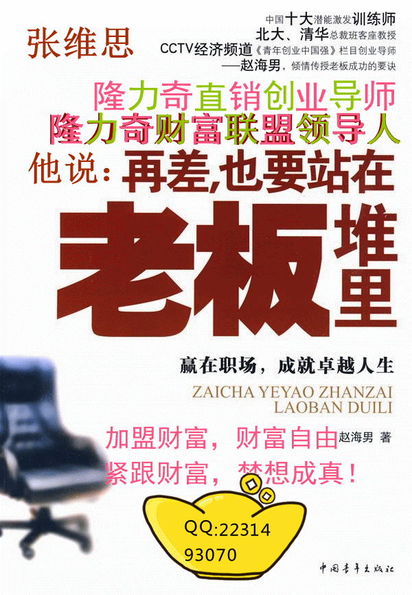 我的老師成誠老師加盟隆力奇的時候,他就創(chuàng)辦了隆力奇財富聯(lián)盟:全球聯(lián)盟——互聯(lián)網(wǎng)零成本零風(fēng)險在家創(chuàng)業(yè)導(dǎo)師,并提出了夢想、行動、合作、服務(wù)、感恩五大直銷理念。在互聯(lián)網(wǎng)上全心全意為傘下伙伴服務(wù),他的《互聯(lián)網(wǎng)直銷運作實戰(zhàn)——兵法36計》在直銷界頗有盛譽。