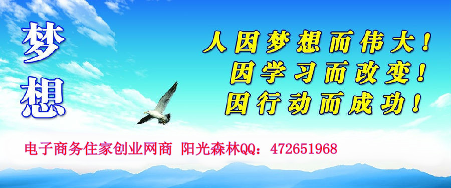 電子商務(wù)+網(wǎng)絡(luò)營(yíng)銷=普通人實(shí)行百萬(wàn)夢(mèng)想的生意!一根網(wǎng)線,一臺(tái)電腦,一杯咖啡,住家創(chuàng)業(yè),改變普通人命運(yùn)!