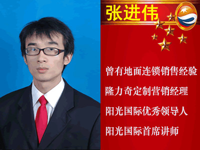 張進偉,河南人,計算機畢業(yè)!隆力奇全球定制營銷經(jīng)理,隆力奇陽光國際系統(tǒng)金牌班主任,隆力奇陽光國際優(yōu)秀領(lǐng)導(dǎo)人。曾經(jīng)在國企上班,從事過地面商務(wù)商會運作,有過豐富的直銷經(jīng)驗,懷著一份不平凡的心,于2012年5月通過互聯(lián)網(wǎng)接觸了隆力奇電子商務(wù)事業(yè),加盟陽光網(wǎng)商國際系統(tǒng),通過自身能力,迅速開避市場,組建一支最具有競爭力的營銷團隊,并堅信帶領(lǐng)自己傘下更多的伙伴走向成功。我的人生格言是:不相信奇跡的人永遠(yuǎn)不會創(chuàng)造奇跡。心有多大,舞臺就有多大!