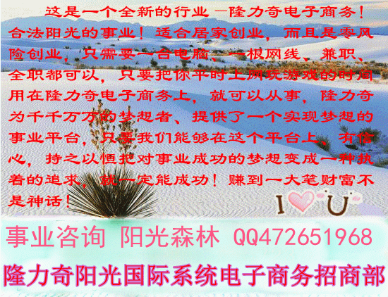 朋友,只要您還有夢想,只要您有時間上網(wǎng),只要您肯付出玩游戲的時間,在隆力奇陽光國際電子商務(wù)中,****全職您都能成功!