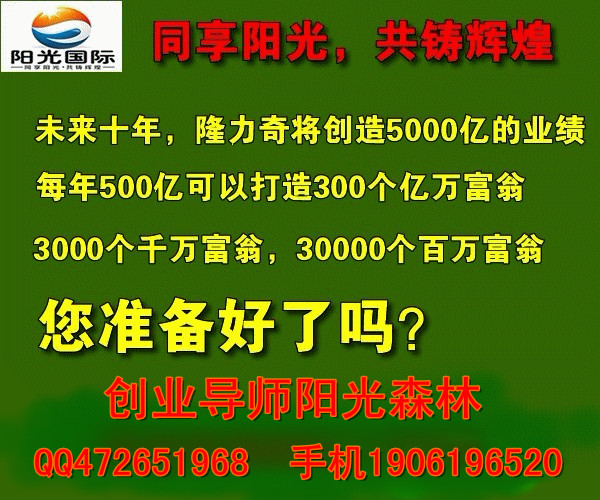 陽(yáng)光系統(tǒng)是吸引人才的沃土,是造就英雄的土壤。你的人生美夢(mèng)將會(huì)在這個(gè)偉大的隆力奇平臺(tái),偉大的系統(tǒng)得到實(shí)現(xiàn),從此走上輝煌的人生!