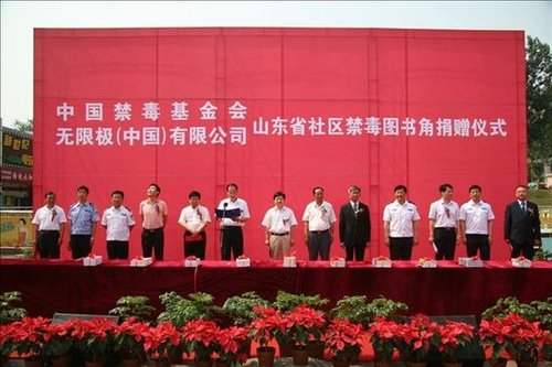 6月26日是國際毒品日,毒品作為世界“三大公害”之一,曾給中華民族帶來無盡的恥辱和災(zāi)難。近年來,毒品問題對個(gè)人、家庭、社會(huì)造成的危害已成為構(gòu)建和諧社會(huì)的重大隱患。毒癮是一種對藥物的濫用導(dǎo)致的依賴,很多吸毒人員起初是因?yàn)闊o知和好奇而走上了不歸路?!吧鐓^(qū)禁毒圖書角”目的就是希望市民在吸取知識(shí)的同時(shí),更多認(rèn)識(shí)毒品的危害,更理性對待吸毒人員。同時(shí)也希望吸毒人員能夠在正確引導(dǎo)下,樹立走向“新生”的信心。 由國家禁毒委、中國禁毒基金會(huì)開展,李錦記健康產(chǎn)品集團(tuán)成員無限極(中國)有限公司協(xié)辦的“送教育,送健康”社區(qū)禁毒圖書角首站活動(dòng)于6月21日在山東濟(jì)南啟動(dòng),無限極(中國)有限公司在山東省濟(jì)南、青島、煙臺(tái)捐贈(zèng)10個(gè)“社區(qū)禁毒圖書角”。中國禁毒基金會(huì)秘書長陳興友、山東省禁毒辦常務(wù)副主任、省公安廳禁毒總隊(duì)總隊(duì)長劉長杰、李錦記健康產(chǎn)品集團(tuán)高級(jí)副總裁楊國晉、以及來自省公安廳、市政府、市公安局的領(lǐng)導(dǎo)及企事業(yè)單位負(fù)責(zé)人、社會(huì)各界群眾300余人出席活動(dòng)。