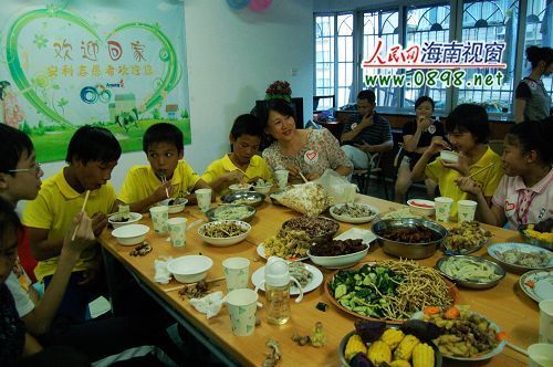 7月16日晚上,海口市一位安利志愿者在家中舉行一場以“歡迎回家”聯(lián)誼活動,5戶安利志愿者愛心家庭邀請來了參加第二屆“冉冉朝陽,慈善藍(lán)天行”活動的5名孤兒一起聯(lián)歡。