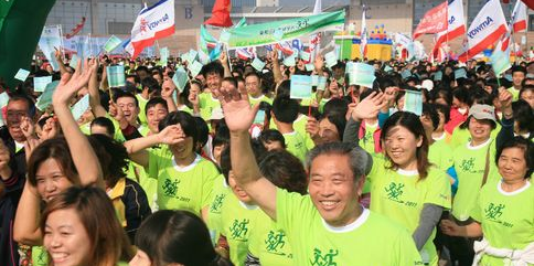 上午9時,2011安利紐崔萊威海全民健康跑儀式正式開始。儀式簡潔而熱烈。9時18分,全民健康跑鳴槍。緊接著,身著統(tǒng)一的綠色主題T恤的健康跑隊伍有如潮水一般“涌出”威海國際展覽中心廣場,踏上了長約5公里的征程。