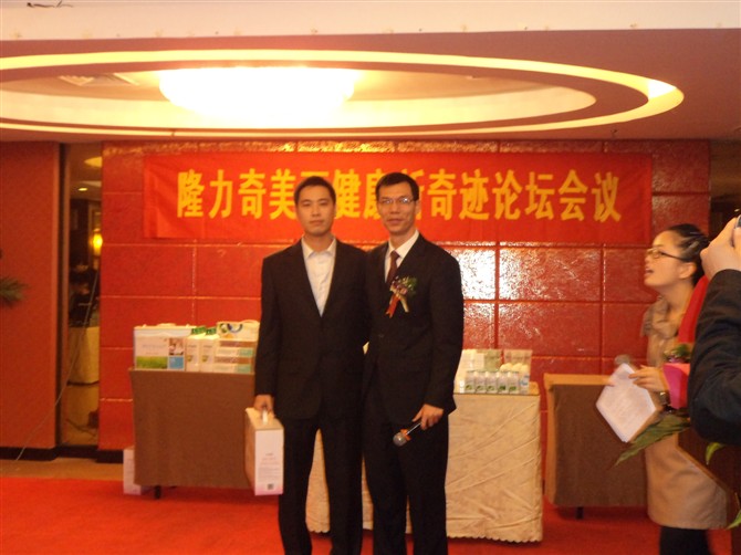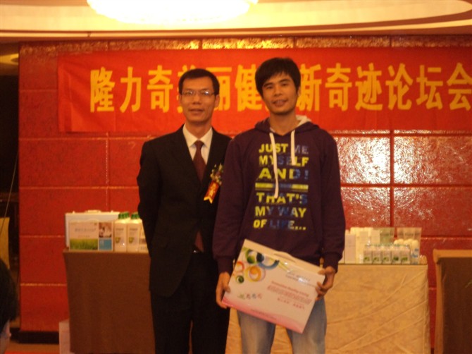 隆力奇福建分公司總經(jīng)理何民先生分別與兩位現(xiàn)場報(bào)單VIP會員合影