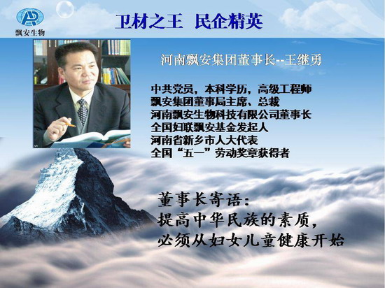 公司占地面積36萬平方米,注冊資金2億元,職工5100余人,其中碩士25人,大中專以上工程技術(shù)人員1680人。集團公司下設(shè)河南飄安高科股份有限公司、新鄉(xiāng)市非織布衛(wèi)材有限責任公司、新鄉(xiāng)市無紡布有限責任公司、新鄉(xiāng)市消毒有限責任公司、長垣縣醫(yī)用衛(wèi)材有限責任公司5個控股子公司 ,并設(shè)立了一個飄安集團與美國恒保的合資公司。集團主導產(chǎn)品脫脂紗布、脫脂棉、一次性無紡制品、醫(yī)療器械設(shè)備、生物材料制品、醫(yī)用高分子共6大板塊50多個系列500多個品種,產(chǎn)品國內(nèi)市場占有率48%以上,且已出口到歐美等國家。