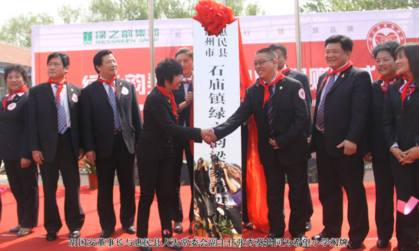 2011年4月29日,由山東省青少年發(fā)展基金會(huì)牽頭、綠之韻集團(tuán)出資建設(shè)的“綠之韻惠民梁家希望小學(xué)”在“孫子故里”山東惠民縣揭牌成立。山東省青年少發(fā)展基金會(huì)副秘書長(zhǎng)王太麗、共青團(tuán)濱州市委書記張志華、惠民縣人大常委會(huì)副主任張秀葵等政府領(lǐng)導(dǎo)出席揭牌儀式。綠之韻集團(tuán)胡國(guó)安董事長(zhǎng)、市場(chǎng)營(yíng)運(yùn)中心總經(jīng)理劉彥明、綠之韻慈善基金總執(zhí)行戴曉彥、山東分公司經(jīng)理梁涌及綠之韻山東地區(qū)愛心經(jīng)銷商共同為愛傳承,為孩子們送上人間四月天的融融暖意。